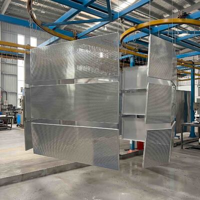 একটি ভারী-ডিউটি ওভারহেড কনভেয়ার সিস্টেম যা স্বয়ংক্রিয় শিল্প পাউডার কোটিং এবং বেকিং লাইনের মাধ্যমে বড় ধাতব প্যানেলগুলি অবিচ্ছিন্নভাবে পরিবহন করে।